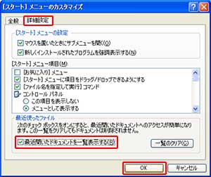 7.「最近開いたドキュメントを一覧表示する」にチェックをいれ、OKをクリック