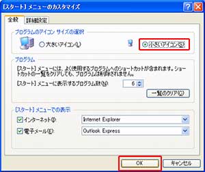 8.[スタート]をクリックすると、アイコンサイズが小さくなっていることが確認できる